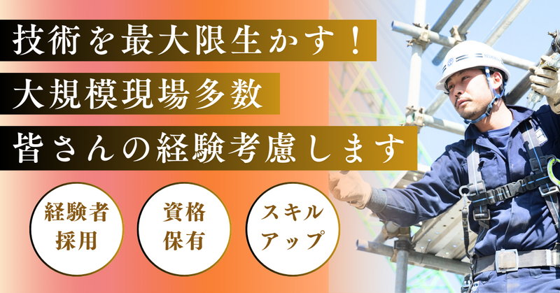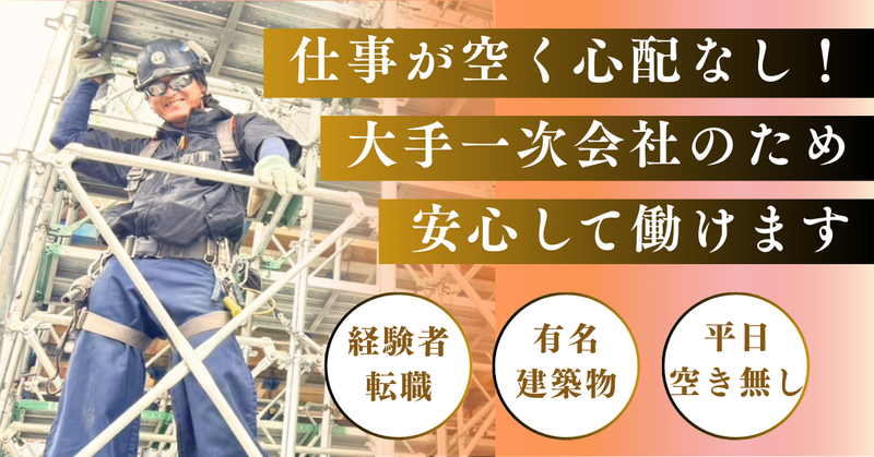 求めている人材 こんな方をお待ちしています  ̄V ̄ ̄ ̄ ̄ ̄ ̄ ̄ ̄ ̄ ̄ ̄ ̄ ̄ ̄ ̄ ̄ ̄ ̄ ●鳶工経験者 ●有資格者 ●長期でキャリアを築きたい方 ●有名建築物・大型プロジェクトに挑戦したい方 年齢の条件と理由:あり(例外事由1号・60歳未満(定年のため))