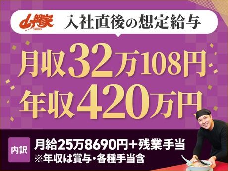 仕事内容 <経験を活かしながら負担を抑えて、高収入◎!> 【飲食経験者歓迎】※ジャンル不問 深夜でも多くのお客様にご来店いただく山岡家。 飲食店経験や接客スキルを活かしながら、 生活リズムを整えて働きたい方にもオススメ! ★ラーメン屋の経験がなくても大歓迎です! <夜勤専従で高収入!> 入社1年目で、年収例420万円可能!! 家族との時間も自分時間も 圧倒的に増える働き方で、高収入スタート◎ 【中国・九州・関西・中部エリアでも続々出店中】 2026年4月3日、香川県に「高松中央インター店」が オープン予定!!満を持して、四国初進出です!!! 2025年10月には、 和歌山県2店舗目「岩出店」もオープンしました! / 成長加速&エリア拡大中に伴い、 正社員を“積極採用中”!(2024年実績:180名以上) \ 【スムーズに業務を始めていただくために…】 入社後は、茨城県つくば市にある自社の トレーニングセンターで研修を実施(3泊4日) ※研修中の交通費・宿泊費は全額会社負担! ※研修中もしっかり給与支給で安心スタート ====================== ◆週休3日制の正社員は、転居を伴う転勤なし!◆ \ オススメPOINT 1 / 【22時~出勤、週休3日×年間休日156日】  ̄ ̄ ̄ ̄ ̄ ̄ ̄ ̄ ̄ ̄ ̄ ̄ ̄ ̄ ̄ ̄ ̄ ̄ ̄ 働き方改革の一環として導入した、 「週休3日制・夜勤専任」の正社員制度。 転居を伴う転勤がなく、地元でライフスタイルに 合わせた働き方が可能になりました! 住み慣れた場所で長く働きたい方や、 家族との時間をゆったり取りたい方にも◎! \ オススメPOINT 2 / 【東証スタンダード上場企業の安定基盤】  ̄ ̄ ̄ ̄ ̄ ̄ ̄ ̄ ̄ ̄ ̄ ̄ ̄ ̄ ̄ ̄ ̄ ̄ ̄ ■残業代は1分単位で全額支給(みなし残業なし) ■昇給・賞与は年2回!! ■プライベートの都合に考慮したシフト希望休、 有給の取得も可能!(土日・連休の取得もOK) ■男性社員の育休取得実績もあり! \ オススメPOINT 3 / 【週休2日制へのキャリアチェンジも可!】  ̄ ̄ ̄ ̄ ̄ ̄ ̄ ̄ ̄ ̄ ̄ ̄ ̄ ̄ ̄ ̄ ̄ ̄ ̄ まずは週休3日制でプライベートと両立。 「もっと働きたい」「キャリアを積みたい」と 思ったら、週休2日制へ転換もできますよ! 実際に、働き方を変えながら キャリアアップを叶えた社員も在籍しています。 <社員の声|入社3年目・店長・30代> 「家庭と両立できる範囲での異動など、 無理のない働き方に惹かれて週休3日制で入社。 前職と比べて、“サービス残業なし”など働き方が クリアで、福利厚生も充実していて安心でした。 その後、仕事がどんどん面白くなり週休2日制に転換。 社内カリキュラムに沿ってスキルが認定されるたびに 昇格し、今では店長として働いています!」 *店長職の収入例 年収560万円(月給41万円+賞与年2回+各種手当) ====================== 【お仕事について】 まずはホール業務からスタートし、 店舗全体の流れや雰囲気をつかみます。 その後、キッチン業務や洗い物、 仕込みなども担当していただきます。 <将来的には…> 接客・調理だけでなく、 衛生管理・設備管理など、店長不在の 時間帯の店舗運営も含めてお任せをします。 \\ 段階的に学べるので安心! // ◆冊子のマニュアルや、店舗のタブレットでも 視聴できる動画教材などをご用意。 何を・どの順番で覚えればいいかが明確で、 着実にステップアップできます! ◆全店舗、食券制&設備が整った店内。 丁寧な接客と、スープ・ネギ・チャーシュー すべてを「お店で手作り」にこだわる山岡家の スタイルに集中しやすい環境です! ※接客・マニュアル・動画はすべて日本語です。 【丸千代山岡家について】 全国に190店舗以上のラーメン店を運営中。 売上好調!前年比平均10%以上の成長率! 47都道府県への出店を目指し、新店OPENも続々。 セントラルキッチンを設けず 全店直営&店内手作りにこだわる姿勢で、 根強いファンもたくさんいます! リピート率はなんと75%超え!(自社調べ) <売上高> 186億7600万円(2023年1月期) 264億9400万円(2024年1月期) 345億8500万円(2025年1月期)*前年比130.5%! 《HP》https://www.yamaokaya.com/ 《採用HP》https://recruit.yamaokaya.com/