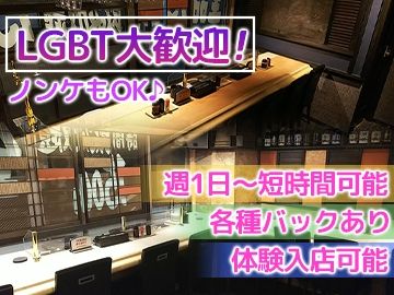 仕事内容 働き方は居酒屋や飲食店、カラオケスタッフなどと ほとんど変わりありません まずはご来店されたお客様をお席までご案内。 カウンターにておもてなしして頂く基本的な接客業務をお願いいたします。 お客様とおしゃべりやカラオケなど一緒に楽しい時間を過ごしてください 難しいシゴトは一切ありません! いつもの自分らしく楽しく過ごせたらOKです 初めての未経験者さんでも社員さんの丁寧なサポートもしっかり 体験入店も受け付けていますので一度雰囲気を確かめに来てみて下さい。 ★お酒が飲めなくてもOK! ★特別なスキルは不要! ★WワークOK!