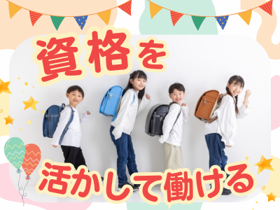 求めている人材 要普通自動車免許 未経験・ブランクOK 【このような方も歓迎します!】 ・子育てが落ち着いて仕事復帰がしたい ・将来、保育士になるために勉強がしたい ・子どもが好き ・子ども一人ひとりと深く関わりたい方 ・パート勤務で家庭・子育てと両立したい方 【資格・経験をお持ちの方優遇!】 ・保育士免許をお持ちの方 ・教員免許をお持ちの方 ・児童指導員の経験がある方 ・学童指導員の経験がある方 ・放課後デイサービスで勤務経験のある方 【他にも活かせる資格】 ・理学療法士(PT) ・作業療法士(OT) ・言語聴覚士(ST) ・看護師 教員などお子様と関わる経験のある方大歓迎! 介護スタッフ・福祉の仕事の経験も活かせます