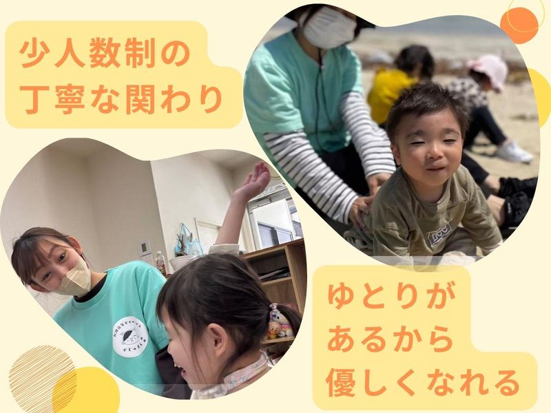 職場環境 陽ざしの差し込む開放的な空間で、子どもたちもスタッフものびのびと自然体で過ごせます。チームの雰囲気もあたたかく、わからないことや悩みがあっても気軽に相談しやすい環境です。未経験やブランクのある方もスムーズに馴染める、安心感のある職場です。 喫煙所:喫煙所あり(屋外)