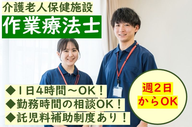 【アピールポイント】 介護老人保健施設の作業療法士を募集! ■週2日から勤務OK! ■託児料補助制度あり! ■勤務時間の相談OKです!
