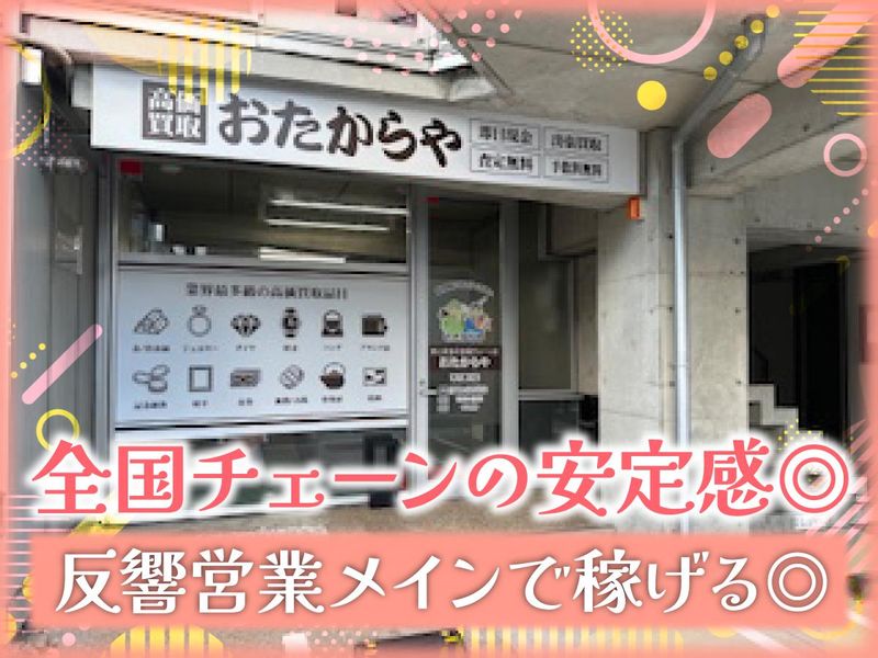 仕事内容 \オープンしたて! 新店での大募集/ ================== 経験・資格なしで手に職つけながら お客様の笑顔を生み出すお仕事 ノルマなし・インセンティブで稼げる◎ ================== 買取店のスタッフと聞いて どんなお仕事をイメージしますか? 買取店のお仕事は お客様の「思い出・いらなくなったもの」を 適正な価格で買い取り、 次の持ち主へと届けるお仕事。 中には遺品整理や生前整理で当店を訪れ 家族や将来の「笑顔」のために ご利用いただく方も。 そして、ここで買い取ったものは 次の持ち主の「笑顔」を生み出す 大切な商品になります。 そんな実は「人のため」に働ける やりがいたっぷりなお仕事なんです。 もちろん「人のため」だけじゃなく あなたが「笑顔」になるための 働き方が叶う職場です! ▶▶▶▶▶▶▶▶▶▶▶ ✨叶う理由をご紹介✨ ▶▶▶▶▶▶▶▶▶▶▶ ~・~・~・~・~・~・~・~・ ✅未経験安心のサポート環境! ~・~・~・~・~・~・~・~・ 先輩のサポートがあることはもちろん、 ・充実したマニュアル ・本部へ写真を送るだけで 査定をプロに依頼出来る「査定サポート」 があるため、商談・査定も安心◎ 入社後には6日間の神奈川県の本部研修で イチから査定士の仕事について学べます。 交通費・宿泊費全て会社負担で手に職をつけ 査定士の道へチャレンジできます◎ 無資格・未経験大歓迎です! ~・~・~・~・~・~・~・~・~・~・ ✅残業無・反響営業中心で接客負担少な目 ~・~・~・~・~・~・~・~・~・~・ 残業はほとんどなく、定時退社 訪問での新規営業も一切なし! 店頭にてまずは笑顔で対応出来ればOK! 対応は チラシ・ホームページを見て来店された方や 問い合わせのあったお客様のところへ出向き 買取業務を行います。 全国チェーンならではの信頼と安心感で お客様の流入も多く、 安定した仕事量が望めます◎ ============= ≪具体的なお仕事について≫ ============= ■電話・来店対応 ■査定・買取 ■事務入力業務 等をお任せします!! 買い取った商品は写真を撮って ネットに出品したり、 商品を販売するお仕事にも関わっていただきます。 ~仕事の流れ~ ① 受付・ヒアリング 「今日は何をお持ちですか?」と受付 ② 品物を確認 キズ・汚れ・型番・重さ・付属品などを見る ③ 査定 マニュアルや相場表を見る 本部や専門スタッフに写真を送って確認 ④ 金額の提示・説明 「今の相場だと〇円になります」と丁寧に説明 ⑤ 買取成立・手続き 身分証確認、書類作成、現金または振込対応 このようなイメージです! 未経験からもスタート可能なお仕事ですので 不安なことなどはお気軽にご相談くださいね◎