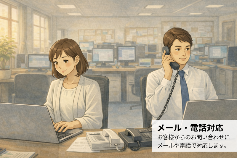 勤務時間・曜日: 9:00~18:00(実働8時間) ※平均残業時間:月10時間 以下 <1日の流れ> 09:00~ 出社後、メールチェック・返信を行います 10:00~ お客様からの問い合わせ対応 12:00~ お昼休憩 13:00~ お客様からの問い合わせ対応 15:30~ 資料作成 17:00~ 入金処理 18:00 退社(残業はほとんどありません!)