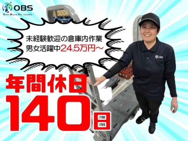 【大正区】年間休日140日で未経験でも安心!倉庫内作業24.5万円~◆女性活躍中!◆夕方退社!◆ 株式会社OBS ピッキング、倉庫内作業 ★倉庫内作業員(正社員)を追加募集します!!★ ★未経験者も経験者も大歓迎★ ★年間休日140日だからプライベート充実!負担少なめ!★ ■業績好調に伴う追加人員募集! ■女性スタッフが活躍中! ■2019年1月に開設したばかりの新しい事業所です! ■スタッフが快適に過ごせるセンターに開設しました! ■創業90年のグループ企業で安心して長く働ける職場! ■家族にも安心してもらえるための環境を整えていきます! ■当社は9000件以上のお得意先(飲食店など)とお取引有り! ■西日本でも全国でもトップクラスの売上高! ■倉庫ワーク経験がある方やフォークリフト免許をお持ちの方歓迎! ■もちろん未経験の方も大歓迎! あなたからのご応募お待ちしております!