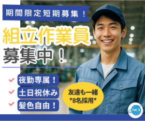 【◎8名募集◎】夜勤×土日祝休み★お給料週払いあり♪期間限定短期!