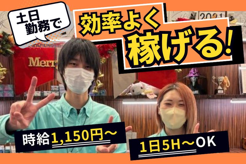 【仕事内容】 \土日祝で効率よく稼ぎませんか?/ パチスロ・カウンタースタッフをパート・アルバイト募集! 《必須条件》 ・20歳以上の方(例外事由2号) ・土日祝勤務可能な方 【スロット サンエイとは?】 前橋市唯一のスロット専門店です 多くのお客様に楽しく遊んでもらうために、 常にスタッフ一丸となって施設を作りあげています YouTubeShortで動画を配信したり、広報活動にも注力中! 【カウンタースタッフの仕事内容】 ・カウンターでの接客/景品のお渡し ・ホールの巡回 ・お客様サポート ・店内の掃除 など |未経験者OK!充実したサポート体制 パチンコスロット店で働いたことがない方でも安心してください 先輩スタッフが隣で業務を教え、慣れるまでフォローします ルールブックも完備しているので、わからないことはすぐに解決! ――――――――――――――――――――― 【カウンタースタッフのおすすめポイント】 ――――――――――――――――――――― ■1日5h~勤務OK ■副業・WワークOK ■人気YouTuberの来店イベント多数! ■週4日以上勤務の場合給与UP!(最大1,350円) ――――――――――――――――――――― 【改善手当で臨時収入獲得チャンス!】 3ヶ月に一度職場環境改善案を出していただき、 採用された場合1,000~10,000円支給します! スタッフの声が通りやすい、風通しのいい雰囲気が魅力です 【職場環境について】 平均年齢32歳、男女比7:3の職場です ホールスタッフ一同、協力体制はバツグン◎ 髪型や髪色は自由なので、皆さんおしゃれも楽しみながら、 和気あいあいとした雰囲気の中働いています! 友達と応募もOK! カウンタースタッフに興味のある方、ご応募お待ちしております!