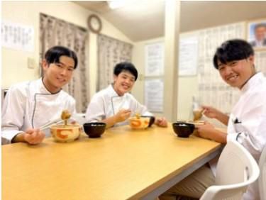 【保険制度】 雇用保険、労災保険、健康保険、厚生年金 待遇・福利厚生 【福利厚生】 ■社会保険完備 →費用全額会社負担! ■毎日健康まかない有 ■社員登用有 ■昇給有 ■誕生日プレゼント ■制服貸与 ■決算手当(年4回/昨年実績) ■交通費規定支給 月額支給上限:2万円 ■車・バイク通勤OK! ~まかない~ 美味しい健康まかないが 毎日食べられます! 実は…三ッ星のまかないって 凄いんです! なんと…1ヶ月間毎日メニューが 被ることはありません! 約30種類のまかないメニューを 従業員全員で楽しんでいます。 働く従業員の健康を考え、 谷川会長自ら考案した絶品まかない。 働き方・時間に関係なく 全従業員対象なので、 仕事前・仕事後・休憩中 どのタイミングでも / みんなで楽しく まかないを作って 食べています! \ ここだけの話、店舗にある 「まかないカレンダー」を見て シフトを決めるスタッフも・・・!