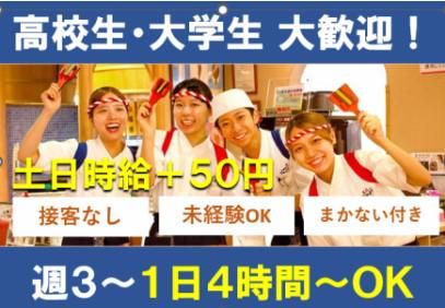 仕事内容 回転ずしなごやか亭にて ランチタイムの キッチン業務をお願いします。 ⭐業務はポジションごとの分担制! ⭐下記のお仕事から色々な業務を経験し 自分に合った仕事を見つけましょう! 【お仕事内容】 ◆揚げ物や汁物の作成 ◆シャリの炊き上げや酢合わせ ◆洗い物 調理は易しい調理(レシピあり)です。 難しい仕事はありません! 補助業務など出来ることからお願いします 【働くメリット】 ✅1.高時給でガッツリ稼げる! ・時給1230円~! ・土日は時給+50円! ・できることが増えれば更に昇給も! ✅2.働きやすさ抜群 ・週3日~1日4時間~OK ・シフトの融通も抜群! →授業終わり~、お昼の隙間時間などあなたの希望を教えて下さい! ・WワークOK! ✅3.未経験・ブランクのある方も安心! ・マニュアル完備 ・はじめは先輩がついて丁寧に指導! ほとんどの方が未経験スタート☆ 安心して働けるバイトです! ✅4.その他のメリット ・30種類のおいしい賄いあり!(毎日) ・仲の良さには自信あり! ・高校生/大学生~主婦さんまで 幅広い方が活躍中! ここまで読んで頂き、ありがとうございます! あなたのご応募をお待ちしております!