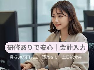 仕事内容 \月収30万円以上×残業なし/ 未経験から始める経理事務(会計入力メイン) - ■ 未経験OK(丁寧な研修あり) ■ 土日祝休み・残業なし ■ 駅チカで通勤ラクラク ■ 正社員登用あり - 【仕事内容】 ・会計データの入力 ・売掛金管理/入金チェック ・決算サポート など 決まったフォーマットへの入力が中心で、 コツコツ進める業務が多いお仕事です。 経理の実務経験を積みたい方にもおすすめです。 勉強中の方や経験少なめの方でも 少しずつ慣れていただけたら大丈夫です。 同じ業務のスタッフがいるため、 分からないことはすぐに確認できる環境です。 初めての方でも安心してスタートできます。