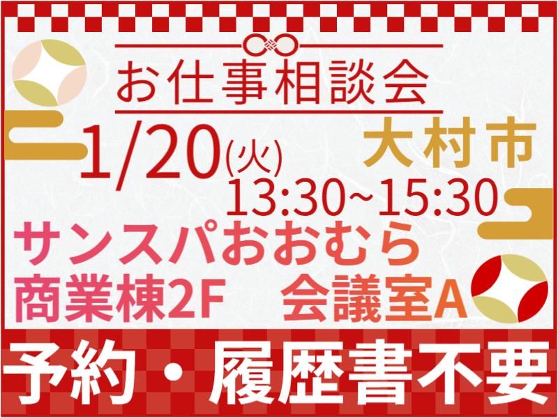 選考プロセス WEB・電話応募どちらでも受付中 ☎0120-68-2209 ■応募⇒⾯接⇒採⽤ ※応募から最短2週間で就業可! ※応募に相談会の参加必要なし 【お仕事相談会】 ※予約&履歴書不要︕服装も⾃由 ※希望者のみ事前説明いたします *1/15(木)13:30〜15:30 【長崎市】メルカつきまち5F A1会議室 *1/20(火)13:30~15:30 【大村市】サンスパおおむら商業棟2F 会議室A ―――――――――――――――――― 「日程が合わない…」という方もOK! 長崎事業所(諌早市栄田町)で随時、 お仕事のご紹介が可能です! まずは、お気軽にご相談ください! ―――――――――――――――――― ■年末年始休業のお知らせ■ 当社は12月27日~1月4日まで年末年始休業となります。 その期間中に頂いたご応募は、1月5日より随時対応いたします。 何卒よろしくお願いいたします。