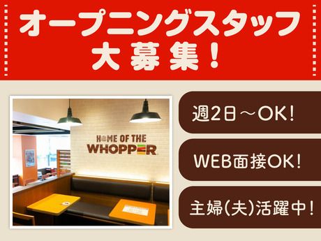 仕事内容 【主婦(夫)さん活躍中!ブランクがあってもOK!安心のマニュアル完備★】 ~*~*~*~*~*~*~*~*~* 10月23日 新店オープン!! バーガーキング \ オープニングスタッフ募集 / ★オープンからの3ヶ月 時給+100円!★ ~*~*~*~*~*~*~*~*~* <オープンまでのトライアル店舗> ・姫路大手前通り店 ・MEGAドン・キホーテ姫路広畑店 <面接店舗>オンライン面接もOK! ・姫路大手前通り店 世界での店舗数第2位! 本格的なバーガーが自慢の 「バーガーキング」が新たにオープン♪ 美味しいハンバーガーを 一緒に日本に広げていきませんか? 【バーガーキングのお仕事をご紹介】 ★:-:★ 接客サービス ★:-:★ ・オーダー受付 ・レジ、お会計 ・接客 ・商品・ドリンクのお渡し ・簡単な清掃業務 チェーンならではの強み◎ マニュアルあり! 困ったら周囲の方が助けてくれるので 初めてのバイトやお仕事ブランクがあっても 大丈夫ですよ♪ キャッシュレスの無人レジもあります! ★:-:★ キッチン・調理 ★:-:★ ・簡単な調理補助 (バーガー・サイドメニュー) ・ドリンク作成 ・店内の清掃 接客よりも裏で働きたい、、等のご希望も お気軽にお聞かせください◎ 【こんなポイントが従業員から好評です♪】 <社割あり(30%オフ)> 休憩時間や仕事終わりに利用可能◎ 人気のワッパー含めたすべての商品を お得にゲットできます♪ +:+:+:+:+:+:+:+:+:+:+:+:+: 一度食べたらクセになる・・・ 人気商品「ワッパー」の特徴! +:+:+:+:+:+:+:+:+:+:+:+:+: 焼き立ての風味香るセサミバンズ♪ お店でカットするフレッシュ野菜♪ 肉汁滴るジューシービーフパティ♪ こだわりがギュッと詰まった ビッグサイズの「ワッパー」が大人気★ バイト終わりにサクッと食べていってください♪ <仲間が増える> 初めてアルバイトをする高校生から 主婦の方まで、幅広い年代の方が活躍中! 学校以外の友達も増えて 楽しく働けますよ◎ 【主婦(夫)さん活躍中!シフトのご相談はお気軽に◎】 *家計の足しにしたい *子育てが落ち着いたので 社会とのつながりを持ちたい *外に出る習慣をつくりたい *自分の時間を有効活用したい *飲食や料理に興味があり、 過去の経験も活かしたい ◎子供にバーガーキングを買って帰ると 喜ぶんです(笑)という声もチラホラ! ◎夕飯作るの疲れたな~という時は ぜひバーガーキングをお得にゲットしてください★ ・シフト制勤務 ・時間・曜日応相談 ・午前のみOK/午後のみOK ・土日祝のみOK/平日のみOK 【バーガーキングの魅力】 - 英語のメニューやマニュアルあり - 外国人のお客様も、いらっしゃいます! もちろん日本語版もあるので 英語が出来なくても大丈夫◎ 困ったら周囲のスタッフが助けてくれる♪ 慣れていけばスムーズに接客できます! 英語力を磨きたい方にもオススメ! - こんなスキルが・・・ - お客様は、お子様からお年寄りまで幅広い! 臨機応変なコミュニケーション力、社会経験、 学校以外の人と関わる経験、接客マナーなど、 卒業後の進路にも役立つこと盛りだくさん◎