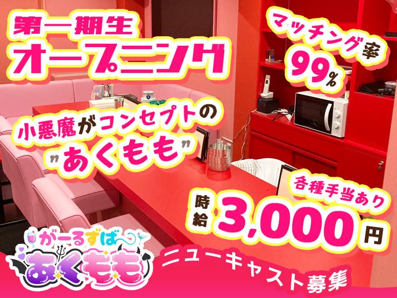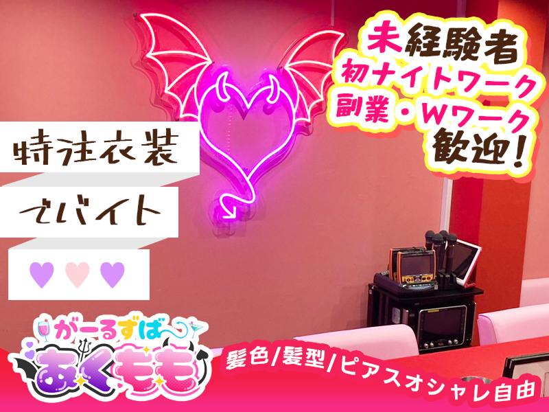 アピールポイント: \天満エリアに完全新規オープン!/ ◆かわいい小悪魔ガーズルバー◆ ガールズバー あくもも <働きやすい安心ポイント> 可愛い衣装を着てバイトをしたい方は必見! 超カワイイ小悪魔風制服を着てお仕事できるので 気分も上がること間違いなしっ★ ・カウンター越しの接客のみ! 連絡先交換や店外交流などもありません! ・当店ではノルマや罰金は一切ありません! 数字に追われず目の前のお客様との時間を 楽しむことが何より大切♪ 未経験の方ものびのび自分らしく働きながら 各種バックでしっかり稼げます! ・自由シフトで働きやすい! シフトはあなたの都合にあわせて 自由自在に決められます♪ プライベートを優先できるので 習い事やかけもち先など 無理なく両立が可能です☆ ・事前準備や出費は一切不要◎ さらにヘアスタイル・ネイル アクセサリーもぜ~んぶ自由☆