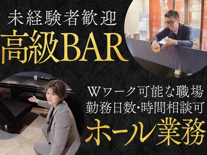 仕事内容 ★事業拡大のため新規スタッフ募集★ 【お仕事内容】 ・ホール業務全般 ・お客様の受付、お席までのエスコート ・オーダー確認 お酒、ソフトドリンクの提供 ・テーブルメイキング ・お皿洗い ・簡単な清掃 など 落ち着いた雰囲気のバーなので、 「派手で賑やかな場所が苦手」 という方でも大歓迎です◎ 特別なスキルや経験は不要です! お酒の知識がなくてもOK◎ スタッフがしっかりサポートするので、 経験がない方もご安心ください。 お客様との乾杯や飲酒、 ドリンクや売上バック 連絡先の交換や同伴などはありません!