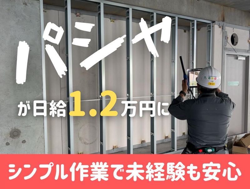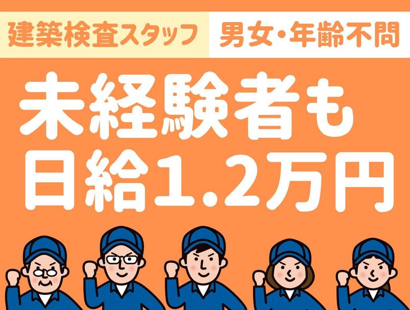 仕事内容 <日給1万2000円スタート><残業月20時間以下><年間休日120日以上><昇給・賞与など待遇充実>未経験からのチャレンジ歓迎!現場仕事なのに肉体労働一切なしで高収入♪ ――――――――――――――――― 筋肉じゃなくて眼で稼ぐ インテリワークに挑戦しませんか? ――――――――――――――――― 汗を流して重いものを運ぶ。 そんな現場のお仕事を想像された方、 当社の仕事を知ったら驚くはず。 というのも、一番重たいものでも タブレットや計測器程度。 なのに、日給1万2000円可能です。 しかも経験や知識は一切不要! ▼▼ その気になるお仕事は… ▼▼ 建物の完成後に見えなくなってしまう 内部構造を記録するお仕事になります。 「鉄筋が正しく組まれているか」 「コンクリートの強度は十分か」など、 一つひとつチェックを行い、 建物の耐震性を診断していきます。 躯体検査と呼ばれる上記業務のほかに、 電気・ガス・水道といった設備を確認する 内装検査も担当していただきます。 検査は最新のITツールを導入していますし 音声認識ツールでのテキスト自動化や チェックシートなどフォロー体制が充実。 もちろん入社後の研修制度がありますので、 確実に経験を積んでいける環境です。 ――――――――――― 研修・フォロー体制 ――――――――――― 入社後の研修では経験豊富な先輩が 仕事の進め方を丁寧にお教えします。 座学で詰め込むのではなく、 実際の現場で教えるので理解が早いです。 また「なぜこの作業が必要か」、 「将来的にどんなリスクがあるのか」など しっかりと言語化して伝えるため納得しやすく、 自信を持って活躍できる人材になれます。 現場仕事でイメージされる 「背中を見て覚えろ」なんてことは 一切ありません。 ――――――――― チーム制で安心 ――――――――― 基本的に直行直帰となりますが、 現場は3~4人のチームで動きます。 わからないことをスグ確認しやすく、 未経験者も安心して活躍できます。 ―――――――――――― 慣れてきたら黙々作業 ―――――――――――― 現場でのコミュニケーションは 朝の打ち合わせ程度で、 作業は黙々と進めていきます。 業務に慣れてきたら、 自分のペースで検査可能。 1日の進捗や他スタッフの状況を見て 無理なく働けます。