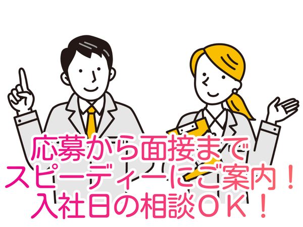 【保険制度】 雇用保険、労災保険、健康保険、厚生年金 待遇 社会保険完備(規定あり) <即収入GET!> 全額日払いok/翌日振込み、手数料”0円” 月払いもok(末締め翌月20日払い) マイカー・バイク・自転車通勤ok