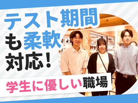 勤務時間 勤務時間/18:00~21:30 営業時間/10:00~21:00 ★シフト制 ★授業終わりの18:00~など、夜だけの短時間勤務OK! ★週2日~、1日3時間から働けます◎テスト期間の調整も可能! ★長期休みにはがっつりシフトINもOK!柔軟に対応します♪ ★未経験の方も歓迎!先輩が丁寧にサポートするので安心♪