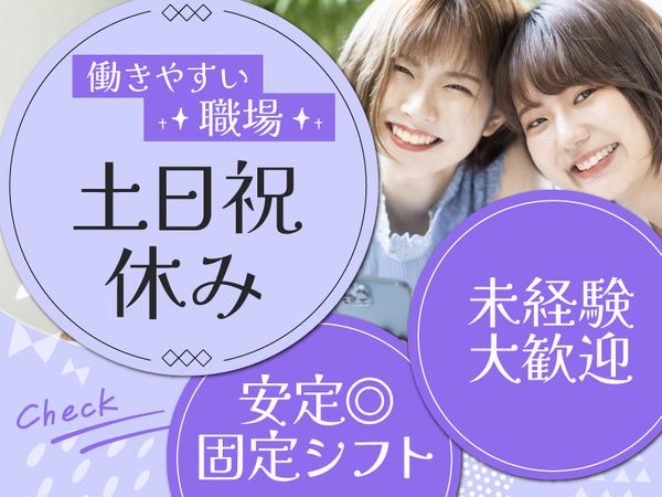 【保険制度】 雇用保険、労災保険、健康保険、厚生年金 待遇 ・社会保険完備(健康・厚生年金・労災・雇用) ・無料健康診断 ・有給休暇 ・産前産後休暇 ・通勤手当 ・育児休暇 ・残業手当 ・昇給制度 ・通勤手当 ・髪色・私服/オフィスカジュアル・シンプルネイルOK ・研修制度 ※転勤なし ※勤務地による、規定あり 受動喫煙対策、契約期間(更新期間)は勤務地により異なります。 詳細は面接時または内定時にお伝えいたします。 <C001KW>