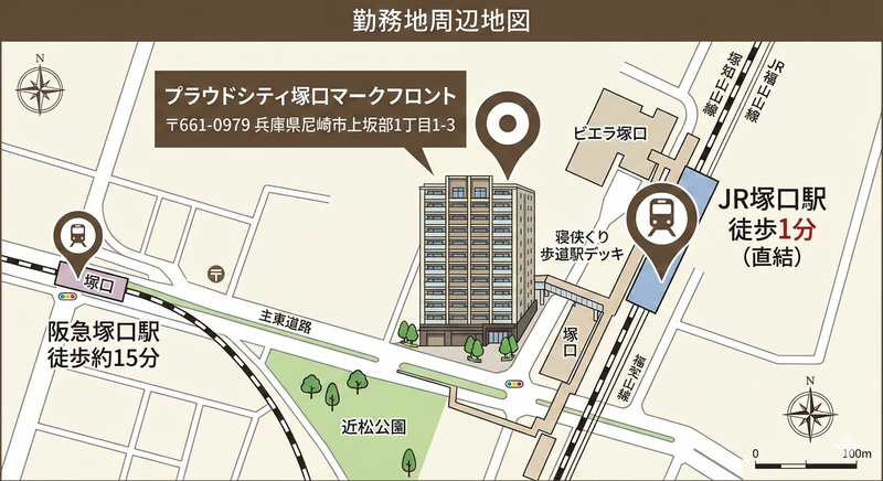 交通・アクセス JR「塚口駅」直結*自転車通勤OK