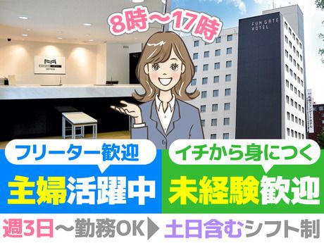 仕事内容 デザイナーズホテル日勤フロントSTAFF 【雇用形態】アルバイト・パート 【勤務時間】8:00~17:00(フルタイム) 1日8時間/週3日~OK◎(土日含むシフト制) 【勤務期間】長期 【勤務地】札幌ファンゲートホテル (北海道札幌市中央区南三条西9丁目998-6) 【給与】¥1,200~ 【応募条件】未経験歓迎! ★シフト調整は柔軟に対応! ★フリーターの方もバイト掛け持ちOKです! ー ▼ホテルの詳細はコチラ♪ https://fungatehotel.jp/sapporo/ ▼当社の詳細はコチラ♪ https://granbellhotel.com/ ー *・。*デザイナーズホテル×フロントstaff*。・* 【ホテルフロントスタッフ】 ●チェックイン、チェックアウト受付 ●予約などのお問い合わせ対応 ●お客様のご案内 ●簡単な事務処理 など ほとんどの方が未経験からのスタート! 他のスタッフがフォローしますので、ご安心くださいね☆彡 \接客・サービス・マナーが身につく★/ プライベートでも役に立つ、マナー、立ち振る舞い、正しい言葉遣いが身につきます◎ 就職活動や、将来にも役に立つスキルです! 未経験歓迎! 新大学生歓迎!第二新卒も歓迎♪ 「ガクチカのため!」そんな志望動機でも◎ 《下記職務経験のある方も活躍中!!》 ・接客、販売、飲食、ホールスタッフ、居酒屋、ファミリーレストラン ▼以下のアルバイト・パート経験も活かせます ホテル、カフェ、コンビニ、カラオケ、清掃、軽作業、データ入力 コールセンター、スーパー、品出し、短期・短時間バイト など ※受動喫煙対策アリ \未経験・バイトデビュー・ブランク歓迎/ 先輩からのフォローがあるので 接客が初めてという方もご安心ください! ホテルのお仕事に興味がある方にもお勧めです! 【語学が活かせる◎】 観光で来られるお客様や海外からのお客様も多く、幅広い層にご利用いただいております◎ 英語、韓国語などを使う場面もあります。外国人スタッフ、留学生スタッフ活躍中! ※外国語が話せなくてもOK!他スタッフがサポートします! *【主婦(夫)、学生さん、フリーターさん活躍中!】* 他ホテルでは、短時間勤務の主婦さん、授業がない日だけ・授業終わりに勤務の学生さん、週5日×フルタイムのフリーターさんなど、在籍しています。 プライベートとうまく両立しながらお仕事、始めてみませんか? 【先輩スタッフがフォローします!】 働いている方は20代~50代と幅広い年齢の方々で、学生さんから主婦さん、フリーターさんまでライフスタイルも様々。 長期で勤務している方も多いので、わからないことがあればすぐに聞いてくださいね◎ *【幅広い年代が在籍!】* 他のホテルで働いている方は、10代・20代・30代の若手~40代・50代中高年・ミドル世代と幅広い年齢の方々が活躍しています。 また、学生さんから主婦さん、フリーターさんまでライフスタイルも様々。 外国人スタッフ、留学生スタッフも活躍中! ※日常会話ができればOK ★通販会社で有名!東証プライム上場企業「(株)ベルーナ」の子会社なので安定雇用!安心して長く働いて頂けます! *【正社員への登用制度あり】* 仕事の頑張りや会社の状況を踏まえて、登用する方が増加中◎ アルバイトパートから始めて→契約社員→正社員へとステップアップの実績もあります!