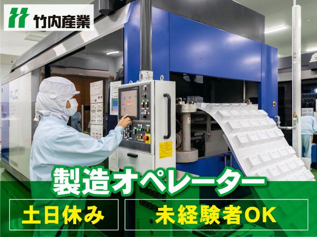 仕事内容 【竹内産業/太田・足利市内の工場】 プラスチックシートや容器の製造に関わる 正社員の製造オペレーター募集です!! \この仕事の魅力/ ・異業種からの転職者も安心! (資格取得支援・明確な評価制度) ・週休2日制/土日休み (長期休暇+有給取得の積極取得) ・充実の待遇制度 (昇給・賞与/各種手当/企業年金etc) ・産休・育休の取得推進 (男性・女性の割合が半数ずつの職場) ・食堂・休憩室・更衣室完備! (フリードリンクサーバー・食事補助あり) ・嬉しい独自制度 (月1回の卵支給・恵方巻やケーキの配布) ━━━━━━━━━━━━━━━━━━━ (A)~(D)よりご希望の職種をお選びいただけます。 【主な業務内容】 (A)シート押出オペレーター <勤務地/足利工場・足利久保田工場> 『プラスチックシート』の製造 ・原料となるペレットの計量、準備 ・押出機への投入 ・品質チェック、梱包など (B)成形オペレーター <勤務地/足利久保田工場・太田工場> 『プラスチック容器』の製造 ・成形機へのプラスチックシートのセット ・シートの準備 ・金型の交換 ・成型品の品質チェックなど (C)インライン成形オペレーター <勤務地/足利久保田工場> 『プラスチックカップ』の製造 ・原料となるペレットの計量、準備 ・押出機への投入 ・金型の交換 ・シート及び成形品の品質チェックなど (D)印刷オペレーター <勤務地/足利久保田工場> 『プラスチックコップ』への印刷 ・印刷機へのコップ投入 ・版替の交換 ・印刷品の品質チェックなど ━━━━━━━━━━━━━━━━━━━ 「社員想い」な社風が、 仕事をもっと楽しくする!! 働く社員ひとり1人が大切な役割を担っており、 社員がみんなが働きやすい環境を整える事が とても重要であり、竹内産業では 「社員の働きやすさ」を常に考えています。