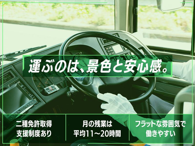 アピールポイント ◆ 岡山で60年以上の実績! 岡山市拠点に貸切バス・タクシー・旅行業を展開しています。 観光・教育・地域イベントなど幅広い運行実績があり、 大手企業や自治体とも長年にわたり取引しています。 安定経営&地域密着の事業基盤が強みです。 ◆ 国交省指定「働きやすい職場認証制度」認定企業! 従業員の皆さんが安心して長く働けるよう、 労働条件や安全管理の徹底、環境整備に注力しています。 この度、その取り組みが評価され、正式に認証を受けました。 ◆ 教育・研修制度が充実! 未経験スタートの方も安心。 約3ヶ月(最大4ヶ月)の研修期間で業務に必要な知識と技術をしっかり学べます。 座学研修:安全運転・接客・端末操作や地域ルールなど 同乗研修:先輩の運転に横乗りし、流れやお客様対応を実地で学習 実技チェック:普通車での運転確認と適切なフィードバック 随時サポート:管理者や先輩によるアドバイス・再指導あり \ドライバーとしての基礎をしっかり固めてからデビューできます!/