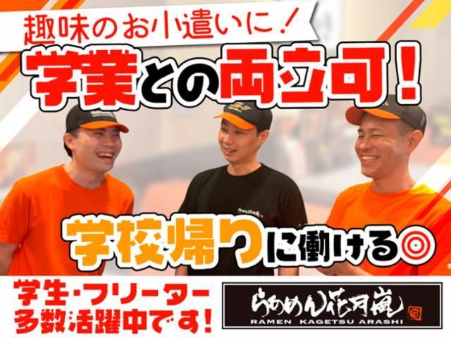 アピールメッセージ 学校も遊びも両立OK!花月嵐で充実バイト生活◎ラーメンの香りに包まれて働いてみませんか? まずは簡単な業務からお任せ♪しっかりお教えするので未経験でも安心!土日のみ・平日のみ・扶養内など働き方ご相談ください!