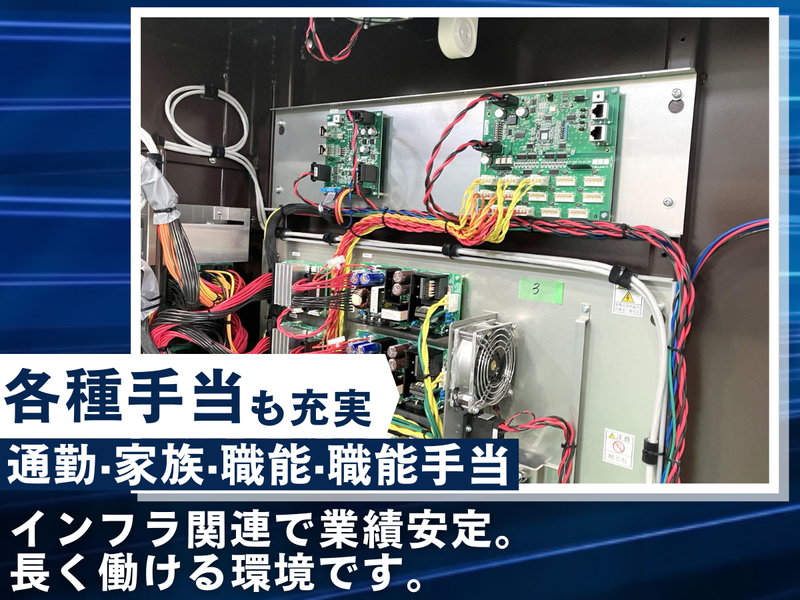 求めている人材 ✅ 学歴不問/経験不問 ✅ 要普通免許(AT限定可) ✅ 未経験者歓迎 ※製造・電気・機械関連の 実務経験がある方は尚歓迎! 【 活かせる経験・知識 】 ※必須ではありません ☑ 電気・機械系の基礎知識 ☑ 分電盤、制御盤の製作・配線経験 ☑ 電気工事、シーケンス制御関連業務 ☑ 2D/3D CADの使用経験 【 未経験スタートの先輩も多数 】 前職がまったく異なる業界だった社員も、 今では現場を支える存在として活躍中。 中途入社のハンデは一切ありません。 「分からない」と 正直に言える環境だからこそ、 着実に技術を身につけられます。