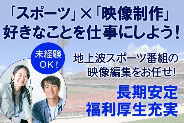 求める人材 特別な技術や経験一切不問! 簡単なPCスキルがあれば大丈夫です♪ 未経験者歓迎/学歴不問 経験者歓迎/ブお仕事のブランクOK 20代 30代 活躍中 ★長期歓迎 働きやすい環境やサポート体制、福利厚生もしっかり整っていますので、長く安定して働きたい方を歓迎します! <こんな方はぜひ一緒に働きましょう!> ◆テレビ業界で働きたい方 ◆エンタメ・音楽・広告等が好きな方 ◆部活やサークル活動を頑張ってきた方 ◆学校行事で企画・運営を行っていた方 ◆映像・制作系学部を卒業された方 \業界経験者も歓迎です!/ 正社員・バイト・業務委託・問わず、制作デスク、テレビ局、映画・アニメ関連の制作会社やアダルト・YouTubeなど映像コンテンツで映像ディレクターや映像制作スタッフとして 画編集、映像制作、映像編集をしたことのある方は、すぐにご活躍できます! 制作協力番組例(ほんの一例です) ★バラエティ・情報番組 「芸能人が本気で考えた!ドッキリGP」「ネプリーグ」「ホンマでっか!?TV」「全力!脱力タイムズ」「ダウンタウンなう」「いただきハイジャンプ」「KinKi Kidsのブンブブーン」「突然ですが占ってもいいですか?」「モヤモヤさまぁ?ず2」「乃木坂工事中」「ゴッドタン」他 ★報道・ドキュメンタリー番組 「news every.」「news zero」「ZIP!」「ズームイン!!サタデー」「Going! Sports&News」「報道ステーション」「グッド!モーニング」「Nスタ」「NEWS23」「FNNプライムニュース」「アナザースカイ2」「情熱大陸」「バース・デイ」「ガイアの夜明け」「ミライ☆モンスター」他 ★スポーツ・音楽番組 「箱根駅伝」「サッカーAFCチャンピオンズリーグ」「Get Sports」「ONEラグビー」「S☆1」「ウイニング競馬」「卓球ジャパン!」「CDTV ライブ!ライブ!」「ミュージックステーション」「関ジャム 完全燃SHOW」「MUSIC FAIR」「FNS歌謡祭」他テレビ局、芸能関係に関わるお仕事です。 ※そのほか、ドラマやアニメ番組にも多数実績あり 制作協力番組例(ほんの一例です) ★バラエティ・情報番組 「芸能人が本気で考えた!ドッキリGP」「ネプリーグ」「ホンマでっか!?TV」「全力!脱力タイムズ」「ダウンタウンなう」「いただきハイジャンプ」「KinKi Kidsのブンブブーン」「突然ですが占ってもいいですか?」「モヤモヤさまぁ?ず2」「乃木坂工事中」「ゴッドタン」「おはスタ」「出没!アド街ック天国」他 ★報道・ドキュメンタリー番組 「news every.」「news zero」「ZIP!」「ズームイン!!サタデー」「Going! Sports&News」「報道ステーション」「グッド!モーニング」「Nスタ」「NEWS23」「FNNプライムニュース」「アナザースカイ2」「情熱大陸」「バース・デイ」「ガイアの夜明け」「ミライ☆モンスター」他