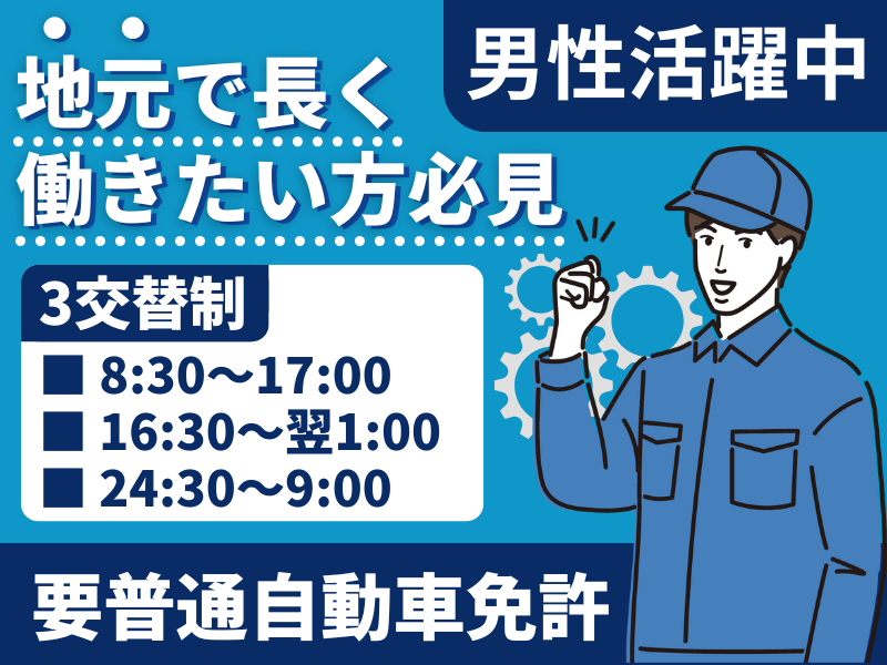 求めている人材 ■要普通自動車免許(AT可) ■ブランク・未経験OK ――――――――――――――――――― ◆ このような経験がある方も大歓迎! ――――――――――――――――――― ・自動車、自動車部品、金型などの製造経験 ・発送作業、フォークリフトなど構内作業経験 ・検査、検品、ライン作業、ピッキング、梱包などの軽作業経験 年齢の条件と理由:あり(例外事由1号・60歳未満(定年のため))