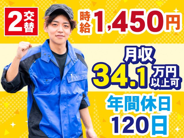 高時給1,450円!月収例34万円以上可能/年間休日120日/未経験OK/寮費無料&送迎あり