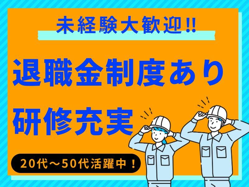【保険制度】 雇用保険、労災保険、健康保険、厚生年金 待遇・福利厚生 【福利厚生】 ■社会保険完備(入社日~) ■交通費規定支給 ┗月額支給上限2万円 ■週払い可 ┗規定有 ■有給休暇 ┗6ヶ月後法定通り ■賞与・退職金制度有 ┗社内規定有 ■家族手当・住宅手当有 ┗社内規定有 ■資格取得促進支援制度 ■残業手当 ■自社での正社員登用制度有 ■大型連休有 ■バイク・車通勤OK!