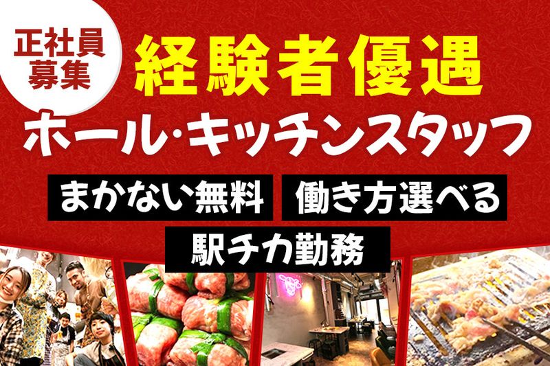 【アピールポイント】 焼肉屋スタッフを正社員募集! ◆経験者優遇 ◆成長飲食企業の東京初進出店舗 ◆完全週休3日や残業なし可能 ◆独立応援・実績多数 浅草駅徒歩5分の文化発信地的大衆焼肉店で