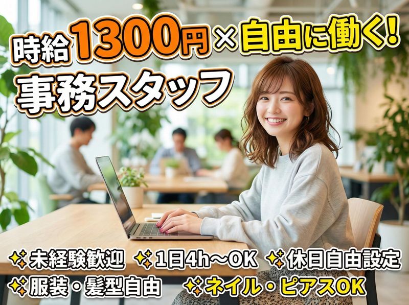 仕事内容 \働き方年々アップデート中◎高待遇/ ✨1日4時間から勤務OK! ✨休日は自由に設定可能! ✨髪型や副業も自由◎ \サポート業務ならではのやりがい✨/ 社内メンバーに『ありがとう』と 言っていただける機会の多い仕事です♪ デスクワークを中心に本社業務をお任せ。 ✔︎具体的には: ✅電話受付や日時調整 ✅報告書や資料の作成 ✅備品の受発注や管理 など  ̄ ̄ ̄ ̄ ̄ ̄ ̄ ̄ ̄ ̄ ̄ ✔︎入社後の流れ: 当社の雰囲気に慣れていただくために、 先輩社員と一緒に作業を繰り返しながら、 取り組みやすい業務を担当いただきます。 ゆくゆくは様々な業務にも挑戦して下さい!  ̄ ̄ ̄ ̄ ̄ ̄ ̄ ̄ ̄ ̄ ̄ 会社の雰囲気も良く、 仲間と支え合いながら働けます! 携われる様々な経験は必ず次に繋がり、 人生の選択肢を広げる大きな ターニングポイントになるはずです。 また、お任せできることが増えれば 必ず給与アップをしています✨ もちろん頑張りも評価します!  ̄ ̄ ̄ ̄ ̄ ̄ ̄ ̄ ̄ ̄ ̄ ̄ ̄ ̄ ̄