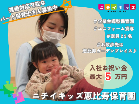 遅番できる方大歓迎/スキマ時間活用/定員29名の企業主導型保育園