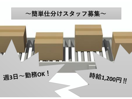 お仕事内容 <積極採用中> ◆倉庫内での仕分け作業をお願いいたします。 ローラーコンベアで流れてきた飲料ケースや雑貨をラベルに書いてある番号ごとに台車に乗せていただきます。 商品を乗せた台車をエレベーターで1Fまで降ろす作業もあります。 台車を持ちながらピッキングをするわけではないので比較的簡単作業です。 未経験から始めた方が多いのでご安心ください♪ *倉庫内冷暖房完備しておりますので作業中も快適です♬