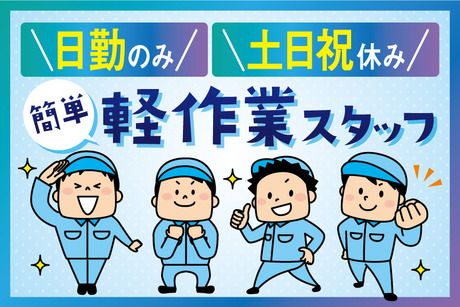 仕事内容 <仕事内容> システムキッチンの部材を運ぶシンプル作業 お任せするのは、 システムキッチンに使われる部品を運ぶお仕事! 体を動かすのが好きな方にはピッタリ! 運び終わったら、 空になったワゴンを回収して、元の場所に戻すだけ。 難しい作業はないので、未経験でもすぐに慣れていただけます! 「ちょっとこの作業は合わないかも…」と思ったら、 他のポジションもご案内できますので、気軽にご相談ください◎ <職場について> 大手住宅設備メーカーでのお仕事! 空調完備&清潔感のあるキレイな職場なので、 暑い日も寒い日も快適に働けます♪ 昼食は厨房で作られたできたてのご飯が、 なんと380円~で食べられます◎ ボリュームもあってコスパ最高!ランチ代も節約♪ 車通勤OK&無料駐車場ありで通勤もラクラク! しかも制服のまま通勤できるので、 朝の準備も時短できて助かります♪ ※20代、30代、40代の男性スタッフ活躍中! <オススメPOINT> ・やることは”運ぶ”だけ◎資格不要のシンプルワーク! ・働きやすさ重視ならココ!日勤のみ&週末お休み♪ ・繁忙期は残業ありで稼げる◎閑散期は基本定時退社! <様々な方面からの通勤有!> 加東市周辺だけでなく、西脇市や小野市、 加西市、三木市、多可町、加古川市などから通う方もいます!