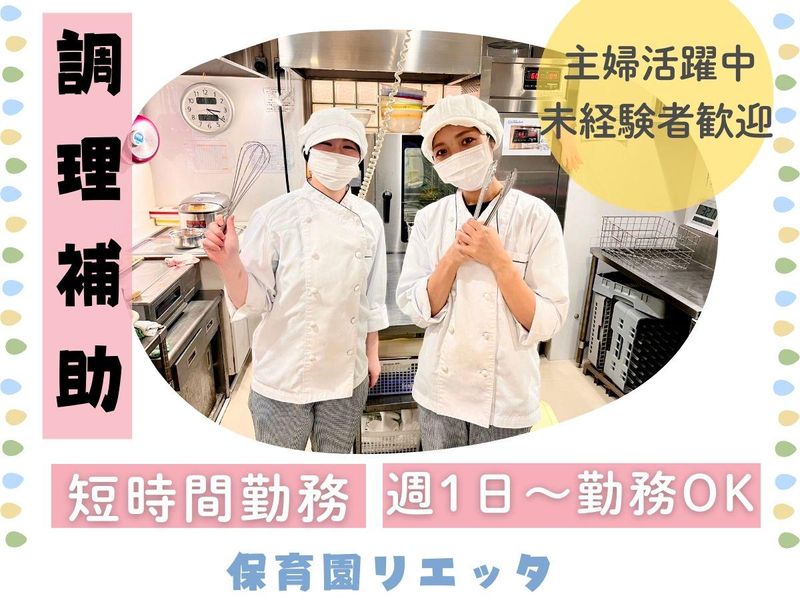 仕事内容 【Point✨】 ✅ 未経験でも始めやすい ✅ シンプル調理サポート♪ ✅ 資格・経験は一切不要! ✅ 20~60代活躍中 保育園での 給食づくりを補助するお仕事です。 家事スキルをそのまま活かせる環境。 扶養内勤務もOKで、 家庭と両立しながらムリなく続けられます。 あたたかく穏やかな雰囲気の職場なので、 初めての方でもすぐに馴染めます♪ 【仕事内容】 ◎食材の準備(カット・下ごしらえ) 調理師・栄養士さんの指示に沿って、 野菜を切ったり軽い下処理を行います。 難しい料理スキルは不要! 普段の家庭料理レベルでできる作業です。 ◎盛り付け作業 調理スタッフが作った料理を、 園児の食べやすさに合わせて盛り付け。 決まった量に分けるだけ! ※勤務時間により行う作業は変わります。 【ここが安心ポイント】 ・1度流れを覚えればとっても簡単 ・シフト時間が決まっているので残業なし ・家庭と両立しやすい、規則正しい勤務 ・未経験スタートの スタッフ多数でサポート体制◎