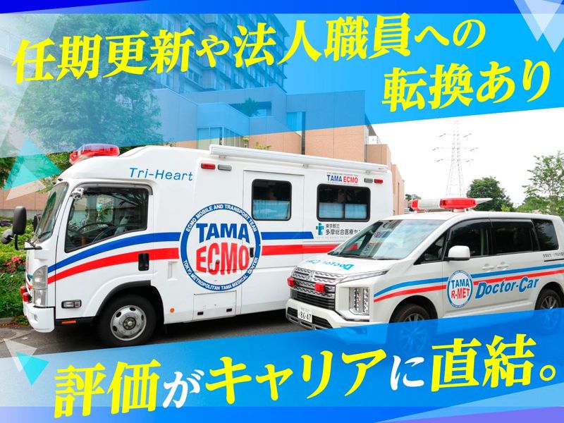 仕事内容 “現場対応だけ”で終わらない。 院内急変対応・教育・ドクターカーまで、 救命士としてキャリアの幅を広げられる環境です。 救命救急センターにおける 救急搬送患者の診療補助~救急領域の 幅広い業務を担います。 ◆具体的な仕事内容 ① 三次救命センター及び二次救急外来における救急搬送患者の初期診療、救命処置支援業務(特定行為の実施) ② ドクターカー及びECMOカーの運転業務を担い、現場出動および初期対応 ③ ドクターカーを運用し、患者の病院間搬送業務 ④ 院内外の災害訓練参加および災害発生時のDMAT等の活動支援 ⑤ 上記を含む救急医療に関する業務全般 ◆職種 地方独立行政法人 東京都立病院機構職員 任期付法人職員 ◆任期 令和8年4月1日 から 令和9年3月31日まで ) 任期中の業績等により、 任期の更新や、法人職員(無期)へ転換できる制度があります。 (注) 採用後は、人事異動により他の病院へ異動になる場合があります。 ✅賞与・各種手当充実 ・扶養手当 ・住居手当 ・通勤手当 ・超過勤務手当 賞与に加え、扶養手当・住居手当など各種手当も整備。 基本給に加えて、生活面まで含めた安定した収入設計ができます。 将来設計を立てやすく、長期的に腰を据えて働ける環境です。