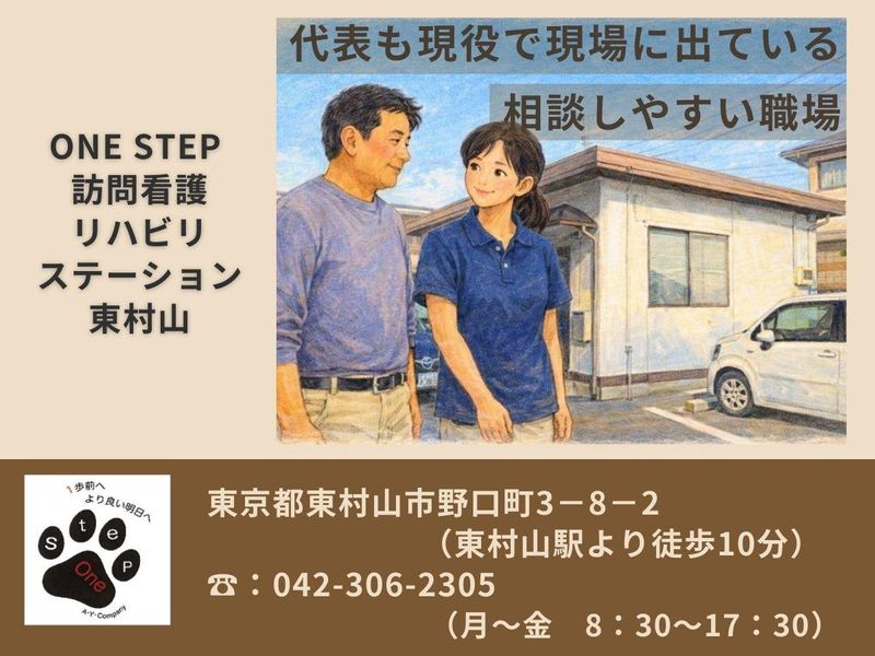 仕事内容 「病院では見えなかった“生活”を支えるリハビリへ」 「もっと一人ひとりと向き合いたい」 「生活に寄り添うリハビリをしたい」 そんな想いを持つ 理学療法士・作業療法士の方へ。 One step訪問看護リハビリステーションでは 姉妹法人施設の利用者様中心の訪問リハビリのため、 訪問未経験でも 安心してスタートできる環境です。 ✔ 月給32万円以上 ✔ 土日休み ✔ 残業ほぼなし ✔ 直行直帰OK 働きやすさとやりがい、どちらも大切にできる職場です。 仕事内容 訪問看護ステーションにて 理学療法士・作業療法士として訪問リハビリ業務を担当します。 主な訪問先 ・姉妹法人が運営する障がい者施設 ・在宅利用者様 ※施設中心のため 訪問未経験でも慣れやすい環境です 具体的な業務 ・身体機能評価 ・リハビリ計画の作成 ・運動療法、機能訓練 ・ADL(日常生活動作)の支援 ・ご家族やスタッフとの情報共有 ※訪問には社用車を使用 ※直行直帰OK この仕事の魅力 ■生活に寄り添うリハビリ 病院とは違い、 利用者様の生活環境の中でリハビリを提供。 「できること」が増える喜びを 利用者様と一緒に感じられます。 ■訪問未経験でも安心 訪問先は 姉妹法人施設が中心。 関係性ができているため 訪問リハが初めてでも働きやすい環境です。 ■収入アップも目指せる 6件目以降は 1件ごとに2500円支給! 頑張りがしっかり収入に反映されます。 年収例 ・月120件訪問 → 年収485万円 ・月140件訪問 → 年収544万円 働きやすい環境 ・完全週休2日(土日休み) ・残業ほぼなし ・直行直帰OK ・夏季休暇 ・年末年始休暇 ・有給取得しやすい 家庭やプライベートと両立できる環境です。