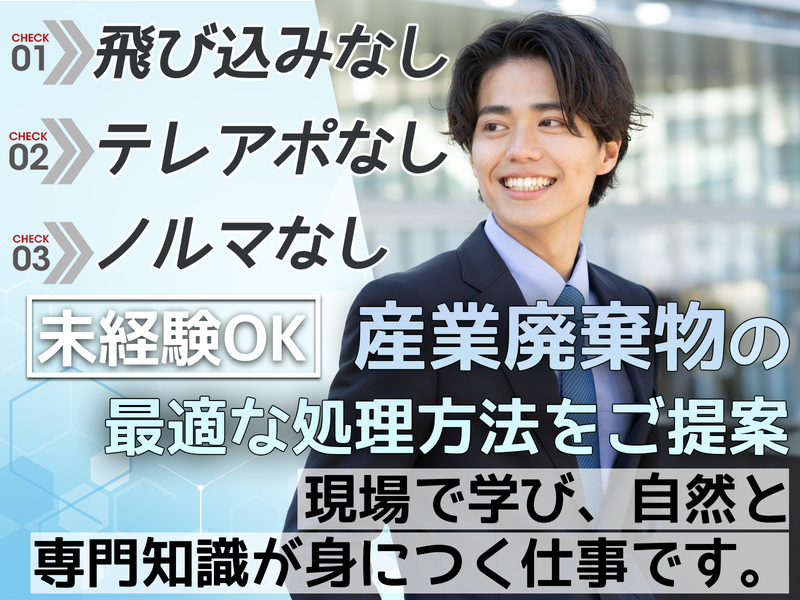 仕事内容 ◤ 飛び込み・テレアポ・ノルマなし ◢ お客さまに産業廃棄物の適切な処理方法をご提案しサポートする提案営業をお任せします! 公共の案件を担当するか、民間の案件を担当するかは、適性にあわせてお願いをする予定です。 【公共案件の場合】 ◆取引先:官公庁や自治体 ・取引先からの相談対応 ・ヒアリング(電話または訪問) ・廃水や廃棄物の 適切な処理方法の提案 ・見積もり作成 ・入札業務(書類作成・提出) ・落札後の手続きや現場調整 など 【民間案件の場合】 ◆取引先:ホテルや飲食店、商業施設など ・お客様から電話などでご依頼 ・ヒアリング(依頼内容の確認) ・廃水や廃棄物の処理方法の提案 ・自社で処理できるかの判断 ・見積もり作成、提示 ・回収手配 など 【対応エリア】 関東エリア(埼玉・栃木・茨城など) ━━━━━━━━━━━━━━━━━━ ✿ 具体的な仕事の流れ ✿ ━━━━━━━━━━━━━━━━━━ ▼お問合せいただいた 企業や自治体へのヒアリング ▼自社で処理できるかどうかを 分析チームと連携 ▼処理方法・運搬方法を検討し お見積りをご提案 ▼受注後は処理施設や車両を手配 最後まで窓口対応! 事務作業もありますが、 難しいPCスキルは不要です◎ 書類作成や細かな確認を 丁寧に進められればOK! ━━━━━━━━━━━━━━━━━━ ✿ 東京都最高位の産廃エキスパート ✿ ━━━━━━━━━━━━━━━━━━ 私たちは東京・福島・千葉・茨城・神奈川と 7つの拠点と100台以上の車両を保有する 総合環境企業として約60年の歴史があります。 これまで培ってきたノウハウを活かして、 社会貢献度の高い事業を展開してきました。 コツコツと実績を積み重ねてきたことで、 多くの自治体から優良認定を受けて、 東京都では最高位の「産廃エキスパート」 の認定も取得しています。 ━━━━━━━━━━━━━━━━━━ ✿ 持続可能な社会構築にも貢献 ✿ ━━━━━━━━━━━━━━━━━━ 本来お客様が責任を持って処理する 廃棄物などを私たちが入って対応します。 ただ単に廃棄物を処理するのではなく、 処理した廃棄物の再利用方法を検討し、 提案して、環境への負荷低減に努める。 持続可能な社会を構築するために 貢献できるのが、大きなやりがいです。 ━━━━━━━━━━━━━━━━━━ ✿ ここがポイント! ✿ ━━━━━━━━━━━━━━━━━━ ⚡案件の7割以上は既存顧客や反響対応 ⚡官公庁案件を含め、年間700件以上の実績 ⚡社用車で1日2件ほど訪問、直行直帰もあり ⚡数字に追われる営業ではなく、 「お客様にとってベストな提案」を重視 ━━━━━━━━━━━━━━━━━━ ✿ 入社後の流れ ✿ ━━━━━━━━━━━━━━━━━━ 入社後はまず座学で 廃棄物処理に関する法律や基礎知識を学び、 処理施設の見学やOJTを実施。 「何を処理できるのか」 「いくらで処理できるのか」 を少しずつ覚えていただきます。 独り立ちまでは1年ほど。 先輩社員が横について 丁寧にフォローするので、 未経験の方も安心です♪ ━━━━━━━━━━━━━━━━━━ ✿ 希望の勤務地で働ける ✿ ━━━━━━━━━━━━━━━━━━ 直行直帰OK!UIターン歓迎! 転居を伴う転勤はありません。 【本社】 東京都江戸川区篠崎町1-2-6 (都営新宿線:篠崎駅から徒歩5分) 【廃水営業課】 東京都江戸川区篠崎町7-10-14 (都営新宿線:篠崎駅から徒歩5分) 【市原支店】 千葉県市原市五井南海岸1番地17 (JR内房線:五井駅から徒歩15分)