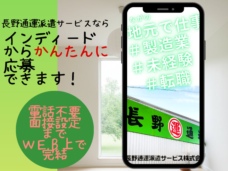 選考プロセス 《 1分で応募完了! 》 ●1分で完了!らくらく応募♪ ●100%人柄重視の採用です! ●面接時の服装は自由! ●まずはお気軽にご応募ください!! ――――――――――― 応募 ↓ 面接(1回を予定) ↓ 採用 ※ご登録のメールアドレスまたは電話番号に面接のご案内をお送りします。 ※ご希望の日時で面接の予約をお願いします。 【登録地】 長野通運派遣サービス株式会社 所在地:長野県長野市稲里町田牧917 電話番号:0262149643 メールアドレス:nagano027@outlook.jp