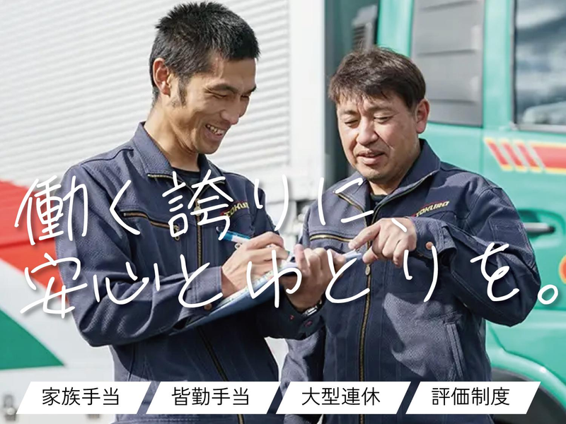 仕事内容 \経験者歓迎☆免許を活かして働こう!/ ✅入社3ヶ月後の給料日に → 【入社祝い金10万円】支給♪ ✅手積み・手降ろしほぼナシ → フォークリフトや天井クレーンを使用 ✅日曜・祝日休み&大型連休年3~4回 →プライベートも充実! ―――――――――――――― <仕事内容> 4t平ボディトラックにて、 京阪神~中四国エリアへの 近・中距離配送をお願いします。 【積み降ろし方法】 フォークリフトや 天井クレーンを使用するので、 体力的な負担は少なめ。 未経験からでも 安心してスタートできます! 【1日の流れ(目安)】 ・運行時間:7~8時間程度 ・配送件数:1日1件(多くて2~3件程度) ・走行距離:20~330km (東は大阪、西は広島までが原則) ※宵積みが発生する場合あり <2t車・3t車の募集もあり> AT限定も可(給与は一部異なります) お気軽にお問い合わせください! ―――――――――――――― <会社の雰囲気> 30代から70代まで 幅広い年齢層のスタッフが在籍。 多様な仕事内容・車両を 用意しているため、 自分のライフスタイルや体力に合わせて 長く働き続けられる職場です。 年齢や経験に関係なく、 誰もが居心地よく活躍できる環境を 大切にしています。 ――■トクラ運輸株式会社■―― 昭和50年設立。 配送する商品は日用品・食料品から 建築資材まで幅広く、 景気に左右されにくい安定した仕事です。 「顧客数 × 商品数」の強みで 大きな経営基盤を築き、 お取引先は順調に増加! 安心して働き続けられる会社です。 \トクラ運輸で“最後の転職”しませんか?/