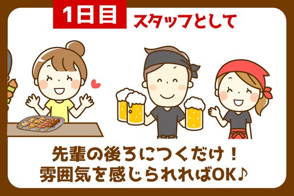 勤務時間 固定時間制 17:00~22:00の間で1日3時間~ ※土日どちらかの勤務が必須 ※週1日~勤務可! ※17:00より前の仕込みの時間帯で働きたい方もご相談ください! 「まずは週1日から始めて、 慣れてきたら勤務日数を増やしていく!」 「学業に慣れてきたから、 そろそろアルバイトを始めたい・・!」 など、ご希望の働き方をご相談くださいね◎
