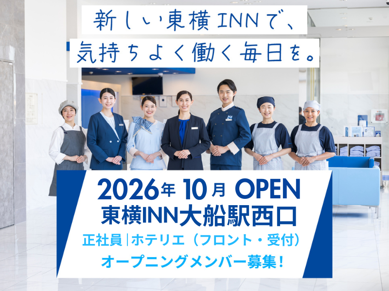 仕事内容 ⭐ 2026年10月OPEN! ⏩ 正社員でも出勤は 週2回ほど ⏩ 年間休日169日 ⏩ チェックインから翌朝まで関わる接客 ⏩ 複数名体制で進める業務 東横INNのホテリエは、 受付だけで終わらない接客職。 お客様をお迎えしてから翌朝まで、 安心して過ごせる時間を支える仕事です。 ○●————————————————————-●○ <東横INNのホテリエの働き方> 東横INNのホテリエは、 10:30~翌11:30の勤務スタイル。 勤務後は2連休になるため、 正社員でも出勤は週2回ほどです。 この勤務サイクルで、年間休日は169日。 平日の昼間に買い物へ行ったり、 空いている時期に旅行へ出かけたり。 有給休暇を組み合わせて、 6日の連休を取るスタッフもいます。 気持ちに余裕を持って働けるからこそ、 お客様にも笑顔で向き合えます。 ○●————————————————————-●○ <未経験でも始めやすい仕事内容です> お任せするのは、 チェックイン・チェックアウト対応、 予約受付やお問い合わせ対応、 館内のご案内など。 オープン前までは、近隣店舗で勤務可能。 勤務先は、 東横INN湘南鎌倉藤沢駅北口、 東横INN湘南平塚駅北口1・2、 東横INN湘南茅ヶ崎駅北口、 東横INN茅ヶ崎市役所 を予定しています。 研修を受けながら、 安心して新店舗でのスタートを迎えられます。 また業務は複数名で進めるため、 わからないことをすぐに確認できる環境です。 まずはできることから少しずつ覚えていけるので、 ホテル勤務が初めての方も安心して始められます。 ○●————————————————————-●○