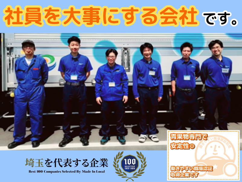 概要・業務内容 給与改定を実施!4.5%UP! \履歴書ナシで面接OK!/ <<即日勤務可能!>> 大型トラックでのプラスチックコンテナの回収配送、中型トラックでの青果物の店舗配送を行っていただきます。付随業務として、フォークリフト免許をお持ちの方は荷物の積み降ろし作業を対応していただきます。 日によって異なる仕事内容なので、ほどよく飽きずに働けます。 ●トラックドライバーとフォークの経験が活かせる! ●近場配送で毎日帰宅!プライベートも充実! ●働きやすい職場認証を取得するなど、 長く快適に働ける会社を目指しています。 ●家賃補助制度あり! 4年間家賃の70%を会社が負担◎(規定あり) ●2025年2月から退職金制度実施 *web面接実施中。遠方にお住まいの方、仕事をしながら転職活動中という方も安心して面接を行う体制がしっかりと整っています。もちろん職場をちゃんと見てから決めたいという方は直接の面接も可能です。お気軽にご要望をお伝えくださいね。 ★入職時期はお気軽にご相談ください★ 即日勤務可能! スピード面接ですぐにお仕事をされたい方はもちろん、現在在職中の方やじっくり考えてから入社をしたいなどのご希望にも柔軟に対応いたします。まずはお気軽にご相談ください。 ※求人番号「8-2」とお伝えいただきますとスムーズです。 <<履歴書不要!スピード面接>>