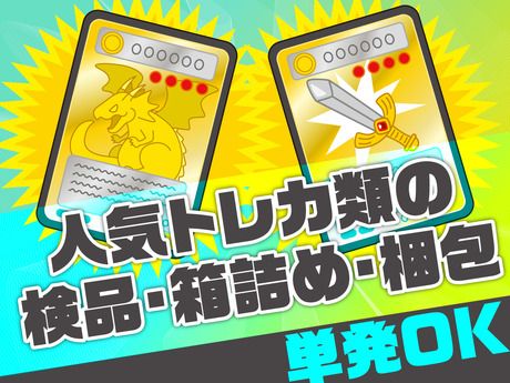 仕事内容 人気トレカ類の検品・箱詰め・梱包 ―― お仕事内容 ―― ★仕分け 出荷先ごとに仕分け ★検品 商品に不備が無いかをチェック ★梱包 箱や袋に詰めて梱包 ★箱の組み立て 化粧箱の組み立て など 座り作業もあり◎ 初めての方でもすぐに覚えられます! わからないことは先輩staffが 丁寧にサポートするのでご安心下さいね♪ Wワーカーさんや学生さんに人気のお仕事です! モクモク作業好きにもぴったり☆彡 ▼▼▼▼▼▼▼▼▼▼▼▼▼▼▼▼▼▼▼ スキマ時間や空いている日を有効活用できる! 【スポット】 【短期/単発】 【長期】 【週1日】 【レギュラー】 【短時間】 など 希望の働き方を叶えられちゃいます! まずはお気軽にご応募ください! \登録までの流れ:たったの3STEP♪/ (1)『応募する』ボタンをタップ!*24時間OK! (2)メール記載のURLより登録会の予約をお願いします! (3)面談でしっかりご説明します!これで登録完了♪ ≪まずはかんたん登録×♪WEB面接OK◎≫ ☆採用率99.9%(まずは簡単Web登録♪) ☆お友達との応募も大歓迎! ☆紹介可能案件数は業界TOPクラス! \アピールポイント♪/ ★未経験歓迎 ★経験不問 ★学歴不問 ★年齢不問 髪型も髪色もピアスもネイルも、 基本的にはぜーんぶ自由♪ あなたの好きなスタイルでオシゴト可能です☆ ▼こんな方活躍中▼ ・授業終わりの学生さん ・かけもちのフリーターさん ・Wワークの方 ・お子さまが学校に行ってる間だけ ・子育てが落ち着いた主婦(夫)さん 若手~中高年まで様々な世代の方が和気あいあいと活躍中♪ ▼超・カンタン軽作業が盛りだくさん▼ 「コツコツ作業が好き!」 「ルーチンワークが好き!」 「モクモクと静かな作業が好き!」 アパレル系~コスメ、軽作業から倉庫、ピッキング、梱包、検品、ラベル貼り、タグ付け どのお仕事もすぐに覚えていただけるカンタンなお仕事ばかり♪ \働いた分はすぐGET☆彡/ 「あと1日分だけ稼ぎたい!」 「月々の収入をもう少しだけ増やしたい!」 「お出かけするこの日の分を稼ぎたい!」 「効率よく収入を稼ぎたい」 そんな方達が多数活躍中♪ 初めての派遣、Wワーク、副業の方も日払い・週払いですぐピンチが乗り切れます!