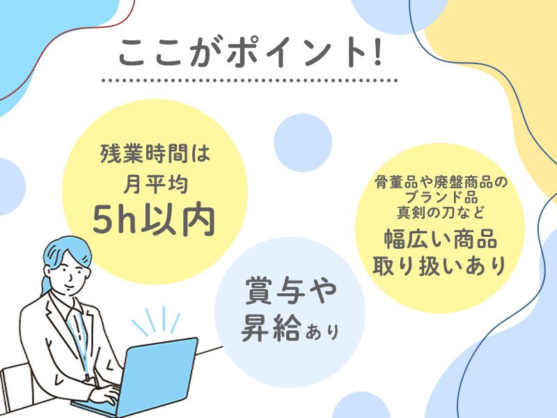アピールポイント: ⏩株式会社SKNについて 株式会社SKNは ブランド品から日用品、中古車まで、 さまざまなモノの買取・リユースを行う会社です。 「価値があるものを、必要としている人へ届ける」 そんな循環をつくることで、事業を拡大してきました。 従業員一人ひとりが長く働けるよう、 業務はシンプルに、 職種ごとに役割分担を行い無駄を減らし、 未経験でも取り組みやすい環境を整えています。 ⏩週4勤務で“無理なく働く”新しい働き方 定時18時×週休3日×残業少なめだから 仕事もプライベートも大事にしたい方にオススメです。 また部内のメンバーはもちろん、他部署ともかかわりのあるオシゴトなので、 コミュニケーションを大切にしたい方にもピッタリです。