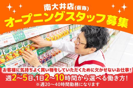 仕事内容 【 お仕事内容 】 ★2026年3月オープン! ★安定して働けます♪(正社員登用あり) ★作業メイン ★ほどよく体を動かせる仕事です ★生活を支える為のレギュラー勤務も◎ ――――――――――――― こんなことをお任せします! ――――――――――――― 品出し&売り場づくりがメイン♪ やりがいバッチリのお仕事です◎ 担当する棚に商品を補充したり、 キレイに並べたりして、 「見やすく・手に取りやすい売り場づくり」をお願いします♪ 自分が整えた棚の商品がどんどん売れていくと、 ちょっと嬉しくて、やりがいも感じられますよ! お困りのお客様がいたら 売り場のご案内もお願いしますね♪ ※オープンまでの期間は 近隣店舗での勤務も相談可能! 【 オーケーの魅力♪ 】 ◆仕事終わりにそのまま買い物できる スーパー内勤務だから、 作業を終えたあとにそのまま買い物OK。 生活に必要なものを効率よく揃えられ、 仕事と家事を両立しやすい環境です。 ◆しっかりした研修&サポート体制 売場経験がある方も、 初めての店舗では戸惑いがち。 基本の流れから丁寧に教えてもらえる研修があり、 不安なく現場に入れます。 ◆ゆとりある人員配置で安心 1店舗あたり社員さんが18~19名いるので わからないこともすぐに相談できて安心♪ 業界的にも社員数が多い職場だから、 とっても心強いですよ! 【 オープニングの準備も万全 】 新店オープンに向けて、 しっかりと研修致します♪ 採用決定後は店舗研修を開始し 近隣の既存店で勤務。 部門ごとに研修店舗が異なります。 (1ヶ月前~オープンまで) 仕事のやり方やルールなど 基礎から実践までじっくり身につけて オープンに向かっていくので安心ですよ! 研修中も待遇は同じです♪ 【 南大井店へのアクセス詳細 】 京急線「立会川駅」改札を出て地上階へ進み、 線路下を進み、橋を渡って右手へ進んでください。 大通り(第一京浜)に出て 左折し道なりに進んでいただくと 南大井文化センターが左手に出てきますので 目の前の信号を渡り、左手の道に入っていただくと 右手に店舗がございます。 #立会川駅近く・大井町エリア #新規オープン! #オーケーストア #OKストア 【 勤務形態について 】 この求人はパートナー社員の募集です! パートナー社員とは? 週20時間以上働く勤務形態です。 社会保険に加入でき、週40時間のフルタイム勤務など しっかり稼ぐ働き方も可能です。
