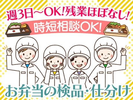 仕事内容 <主な仕事内容> 出来上がったお弁当や、おにぎり、サンドウィッチなどの検品作業や、仕分け作業を行うお仕事です。 検品は、見本を見ながら抜けている食材がないか、ラベルが貼られているかの目視確認。 仕分けは、行先ごとに箱に入れていく作業。 ・検品作業 ・仕分け作業 <職場環境> ・20~60代が中心で活躍中! ・男女比は4:6で、男性・女性問わず活躍してます。 ・部署間の連携がスムーズで、風通しの良い職場です。 ・未経験者歓迎!先輩社員が丁寧に指導しますのでご安心ください。 ・食品工場での経験がある方も歓迎。 ・残業はほぼなし! <職場の声> 「初めての食品工場勤務で不安もありましたが、先輩方が本当に丁寧に教えてくださるので、すぐに仕事に慣れることができました。わからないことがあってもすぐに聞ける雰囲気で、安心して働けています!」 「残業がほとんどないので、仕事終わりに自分の時間をしっかり確保できています。趣味の時間や家族との時間も大切にできるので、ワークライフバランスを重視したい方にはぴったりの職場だと思います!」 「毎日、自分が検品・仕分けしたお弁当やおにぎりがお店に並ぶのを見ると、社会に貢献している実感が湧いて嬉しいです。単純作業ではありますが、集中して行うのであっという間に時間が過ぎますよ。」 弊社営業担当者の引率で事前の職場見学を行いますので不安なく就労スタートして頂けます! まずは問い合わせのみでも大歓迎! お気軽にご連絡ください♪ ※22~翌5時の勤務は18歳以上の方のみ:深夜業のため(労働基準法第61条) <Q&A>入社までの流れについて Q. 応募してからどれくらいで働けますか? A. 応募から入社までは、1週間~通常2週間以内の現場が多くなっています。 Q. 急いで仕事を始めたいのですが対応してもらえますか? A. 即日面談やスピード対応が可能な案件もご案内可能! ご希望をお伺いして、最短で就業できるお仕事をご紹介いたします。 Q. 他の仕事と比較してから決めたいのですが、相談だけでも可能ですか? A. もちろん可能です。 複数の選択肢をご提示しながらご案内します! <Q&A>収入について 【お給料の支払いについて】 Q. 日払いは対応していますか? A. はい、日払いに対応しています。 前日の11時までに申請⇒当日の夕方までにお給料をお受け取りいただけます。 Q. 夜勤の場合でも日払いは可能ですか? A. はい、夜勤後も対応可能です。 お仕事終了後、朝11時までに申請⇒その日のうちにお給料をお受け取りいただけます。 Q. 前払い制度はありますか? A. ご利用可能です。 詳細は勤務先や就業形態によって異なりますので、ご相談時にご希望をお伝えください。 Q. 申請方法は難しいですか? A.どなたでもスムーズにご利用いただけます。 スマートフォンやPCからの申請も可能です!
